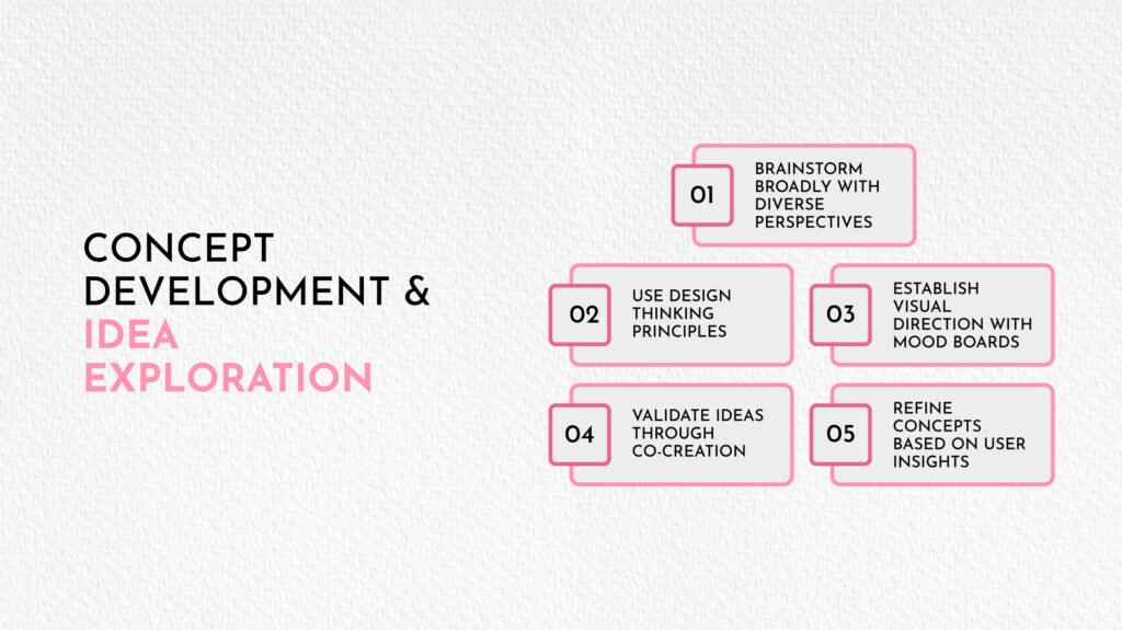 Once you define the problem, it is time to explore solutions. Concept development transforms insights into tangible product ideas through creative exploration and structured ideation.